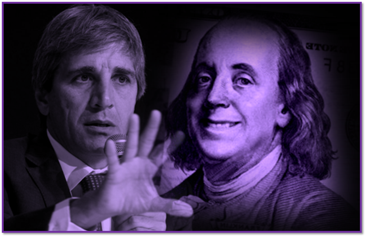 La escena advierte que Argentina debe pagar en lo que resta hasta enero 2026, más de U$S 6000 millones de compleja disponibilidad, para dichas cancelaciones.